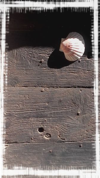 La coquille Saint Jacques fait immédiatement penser au chemin St Jacques de Compostelle et effectivement, des pèlerins passent par là.J'aime ce que tu vois : c'est authentique et joli à la fois. Ton regard se pose là où j'aurais aimé posé le mien et j'aime ça.